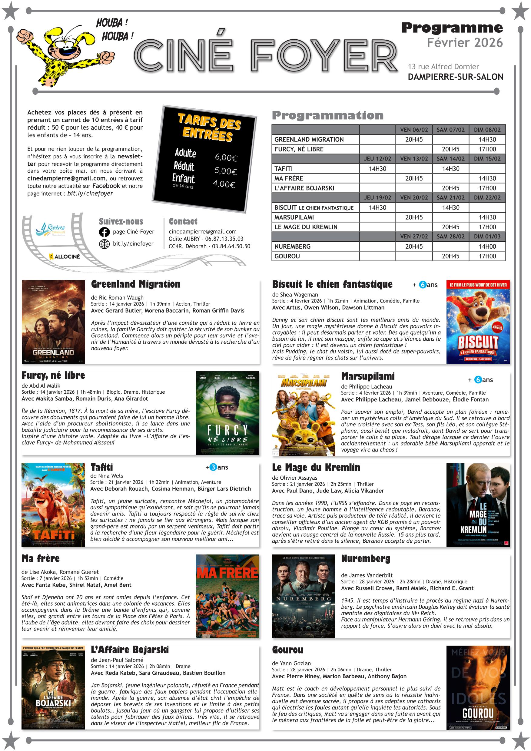 Le Ciné Foyer est le dernier cinéma associatif rural de Haute-Saône. Grâce à une équipe dynamique de bénévoles et au soutien de la Communauté de communes, l'association propose une offre cinématographique à raison de 4 à 6 séances par week-end